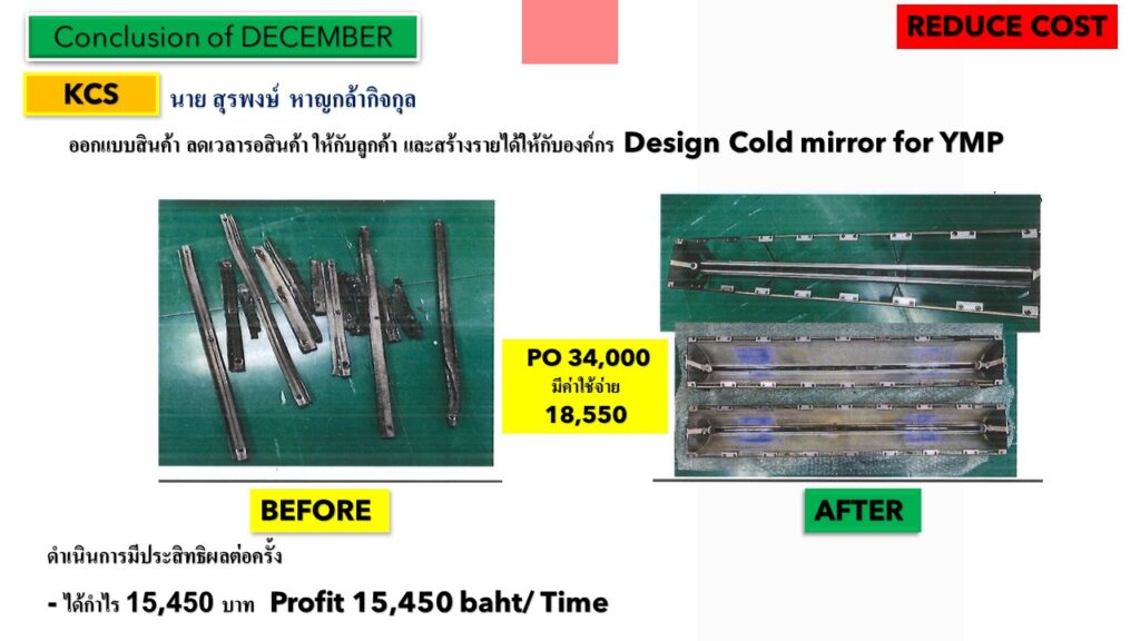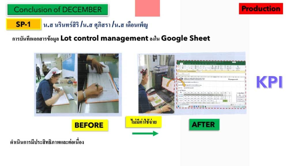 บริษัทมีการดำเนินการกิจกรรมไคเซน การปรับปรุงการพัฒนาที่ดีขึ้นอย่างต่อเนื่อง